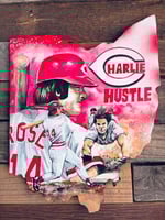 CINCY Reds , CINCY Bengals, FCC art, CINCY logos Skyline . All images painted in pen and ink and acrylics on a12x15 wooden cutout of Ohio.
